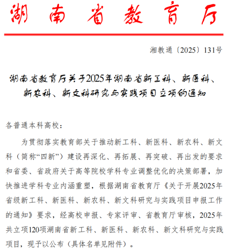 湖南文理学院获湖南省2025年“四新”研究与实践项目三项立项