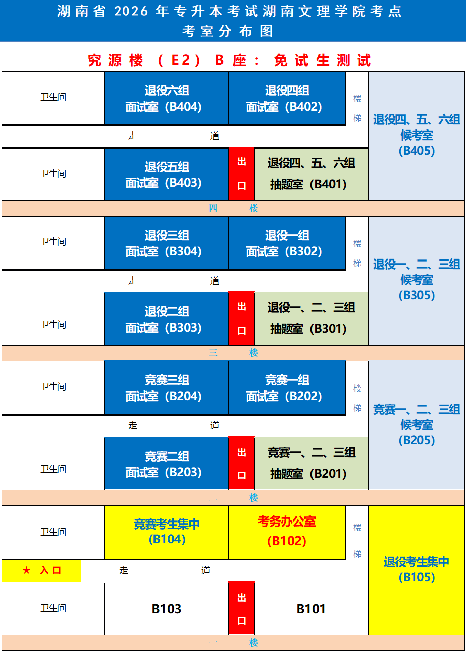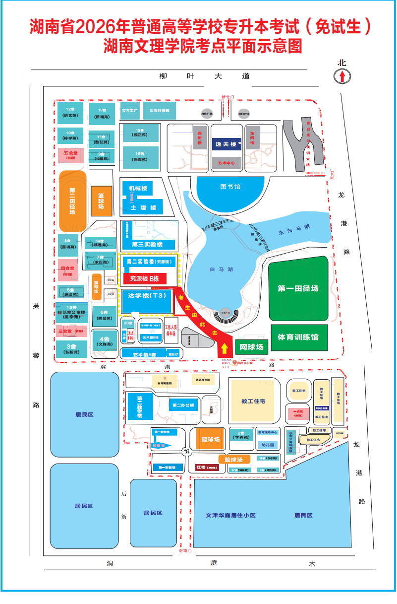 一、湖南省2026年专升本考试(免试生面试)湖南文理学院考点考场设在究源楼B栋(第二综合实验楼,简称E2)。地址:常德市武陵区滨湖路1708号湖南文理学院西校区,校内设有指示牌。